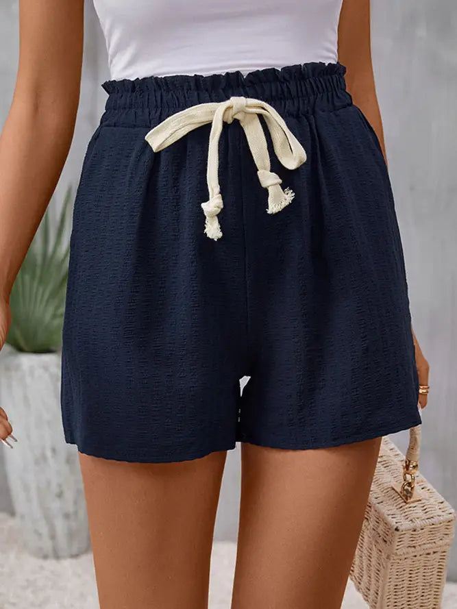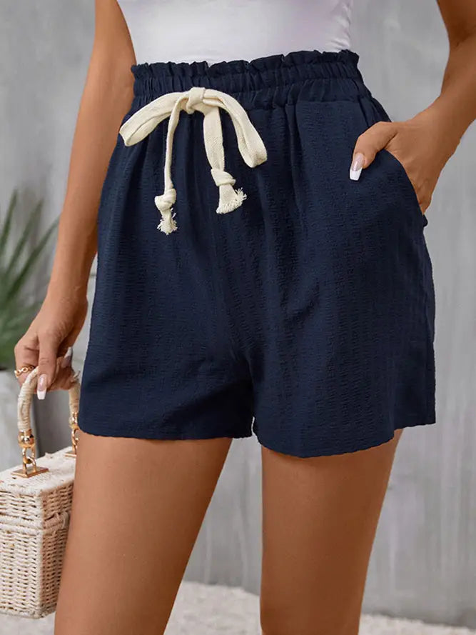 Meet your new go-to: the Easy Fit navy shorts. With a comfy elastic waistband and adjustable drawstring, these shorts are made for days when you want to keep it casual but still look effortlessly cute. Perfect for brunch runs, beach days, or just chilling out, they’re the ultimate mix of comfort and style for your everyday vibe.