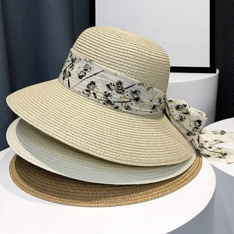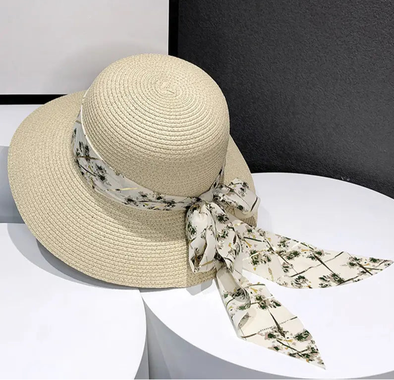 A timeless coastal classic—this wide-brim straw hat features a breezy scarf detail for effortless sun-soaked elegance.