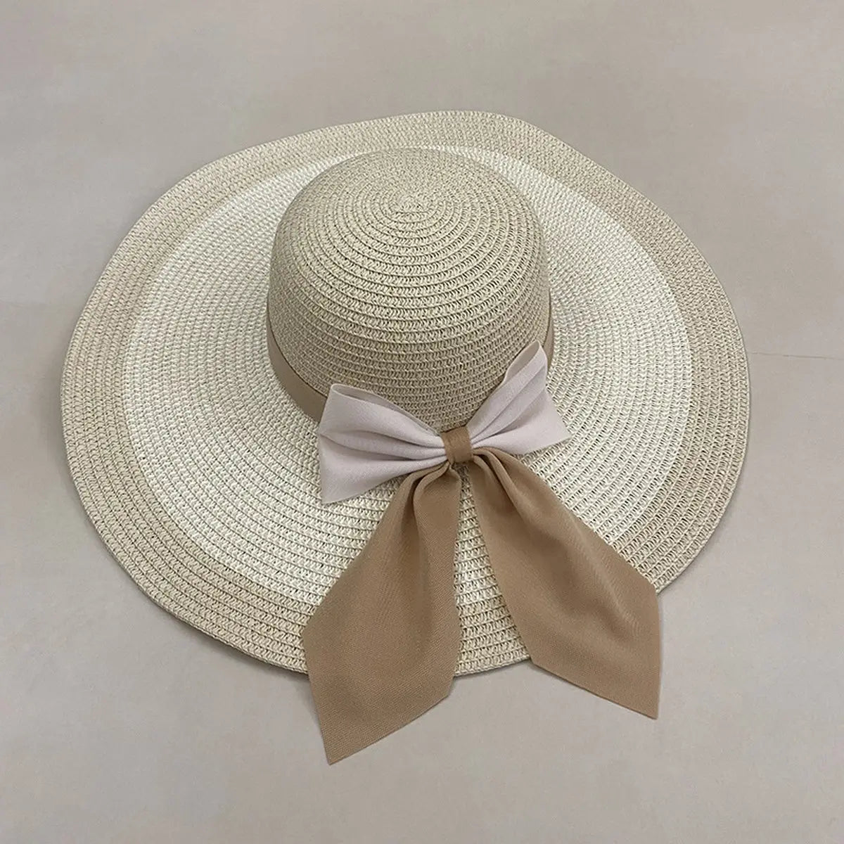 Sweet and sun-ready—this two-tone straw hat is topped with a soft bow for a touch of coastal charm.